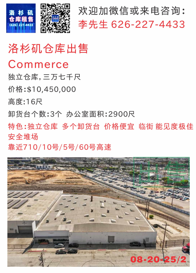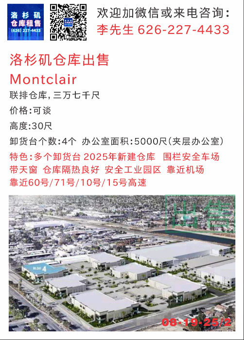 出售:5万尺以上仓库更新,大洛杉矶各区域