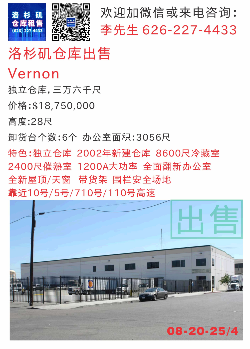 出售:5万尺以上仓库更新,大洛杉矶各区域